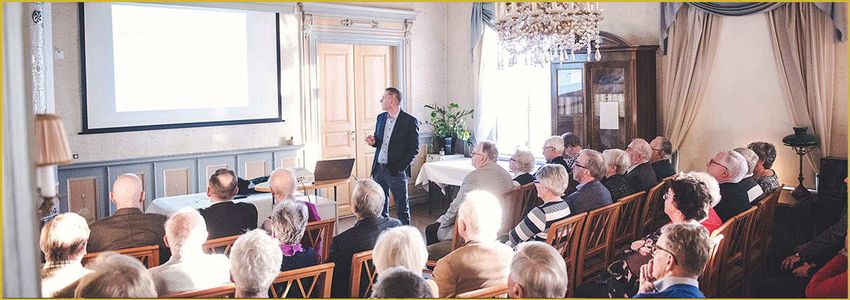 Föredragshållaren deltar och berättar före maten serveras om sig själv och intressanta bakgrundsfaktorer beträffande sitt föredrag.